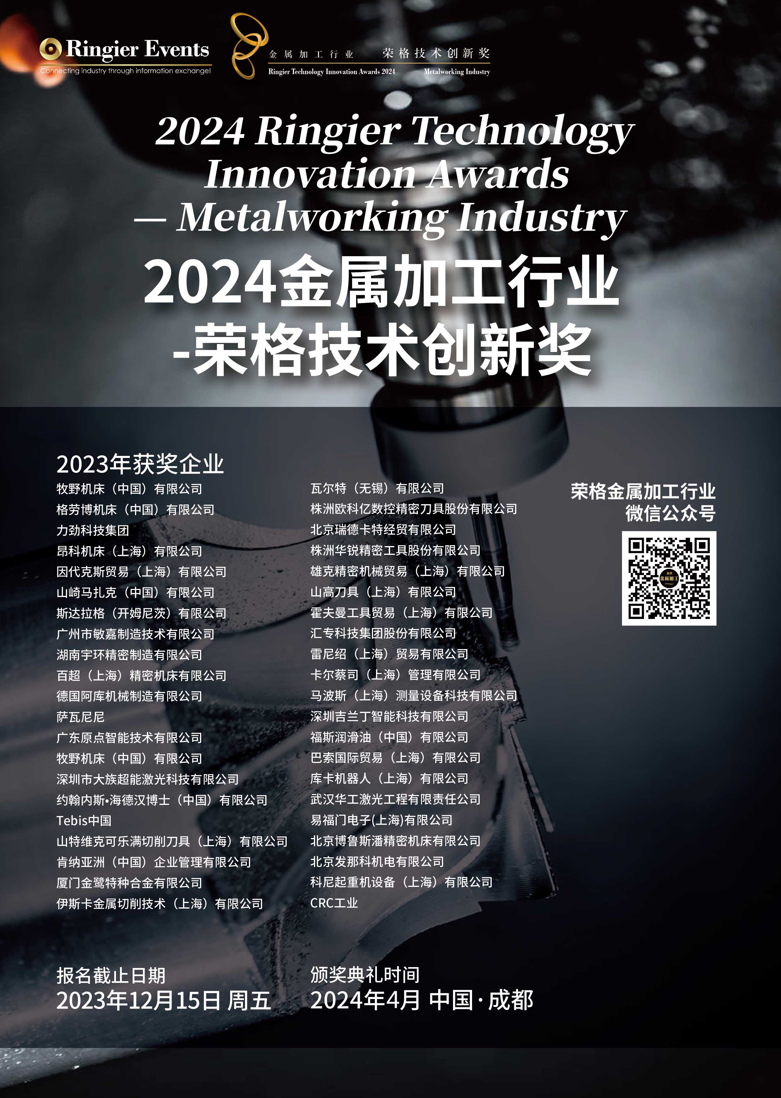 2024 金属加工行业——荣格技术创新奖,您想要的都能得到! |
